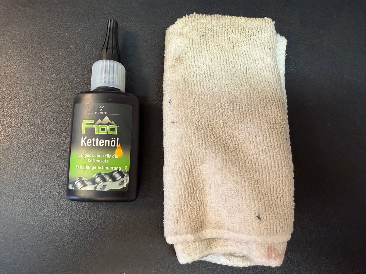 Kettenöl, Lappen und Bürstchen