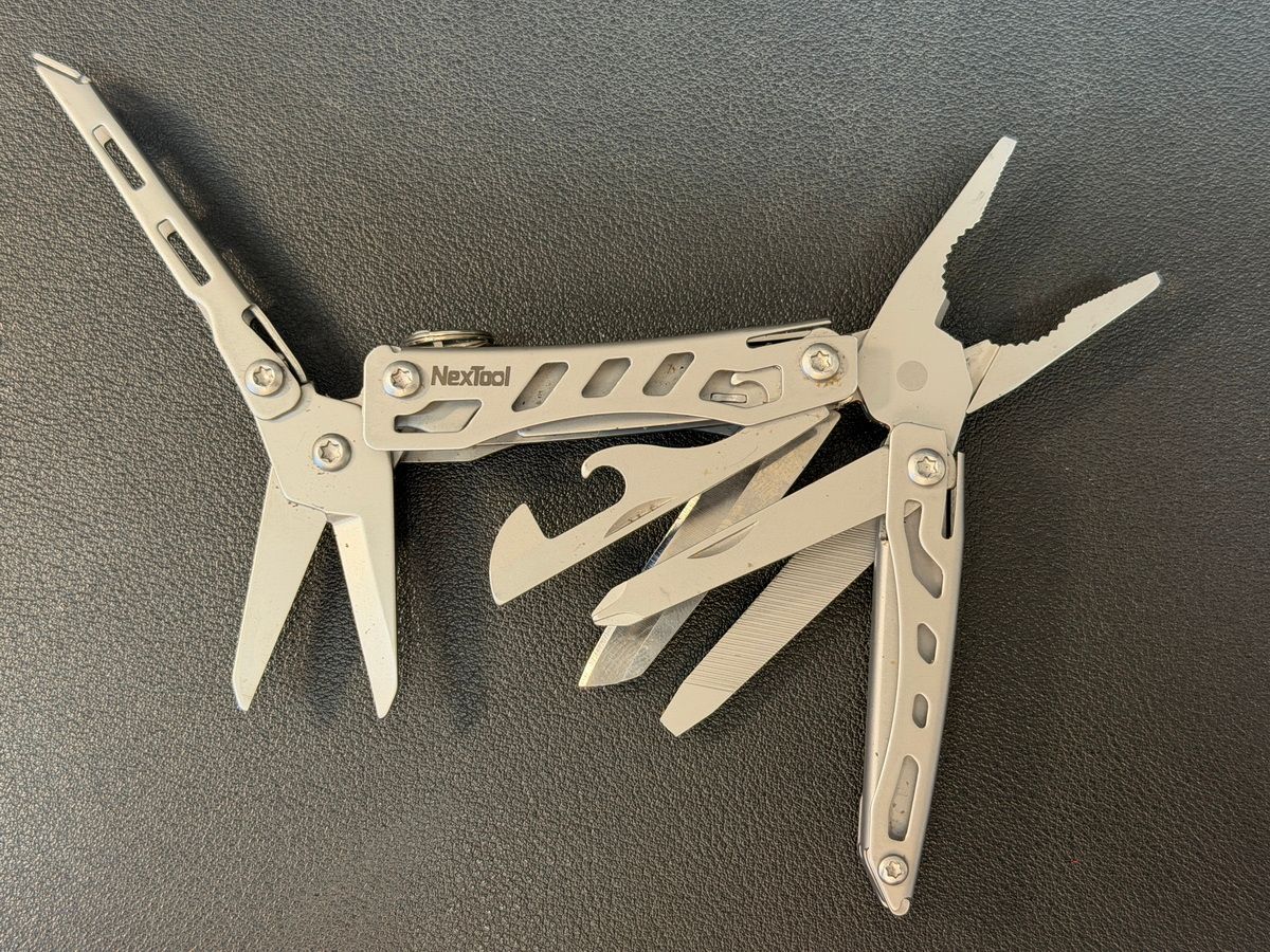 Wenn du ein gutes Taschenmesser hast, brauchst du nicht auch noch ein Minitool. Und umgekehrt. Mein Minitool (s. oben) ist sehr klein und leicht und bietet alles, was ich dabei haben will: Klinge, Schere, Zange, Dosenöffner, Feile. Die Zange ist in sehr vielen Anwendungen Gold wert, sei es, eine deiner Speichen ist gebrochen und du kriegst du den Nippel nicht von Hand aufgedreht (gleiches gilt für Ventilköpfe). Oder es steckt was im Reifen. Du möchtest einen Riss im Reifen nähen und führst die Ahle mit der Zange. Eine Halterung hat sich verbogen usw.
