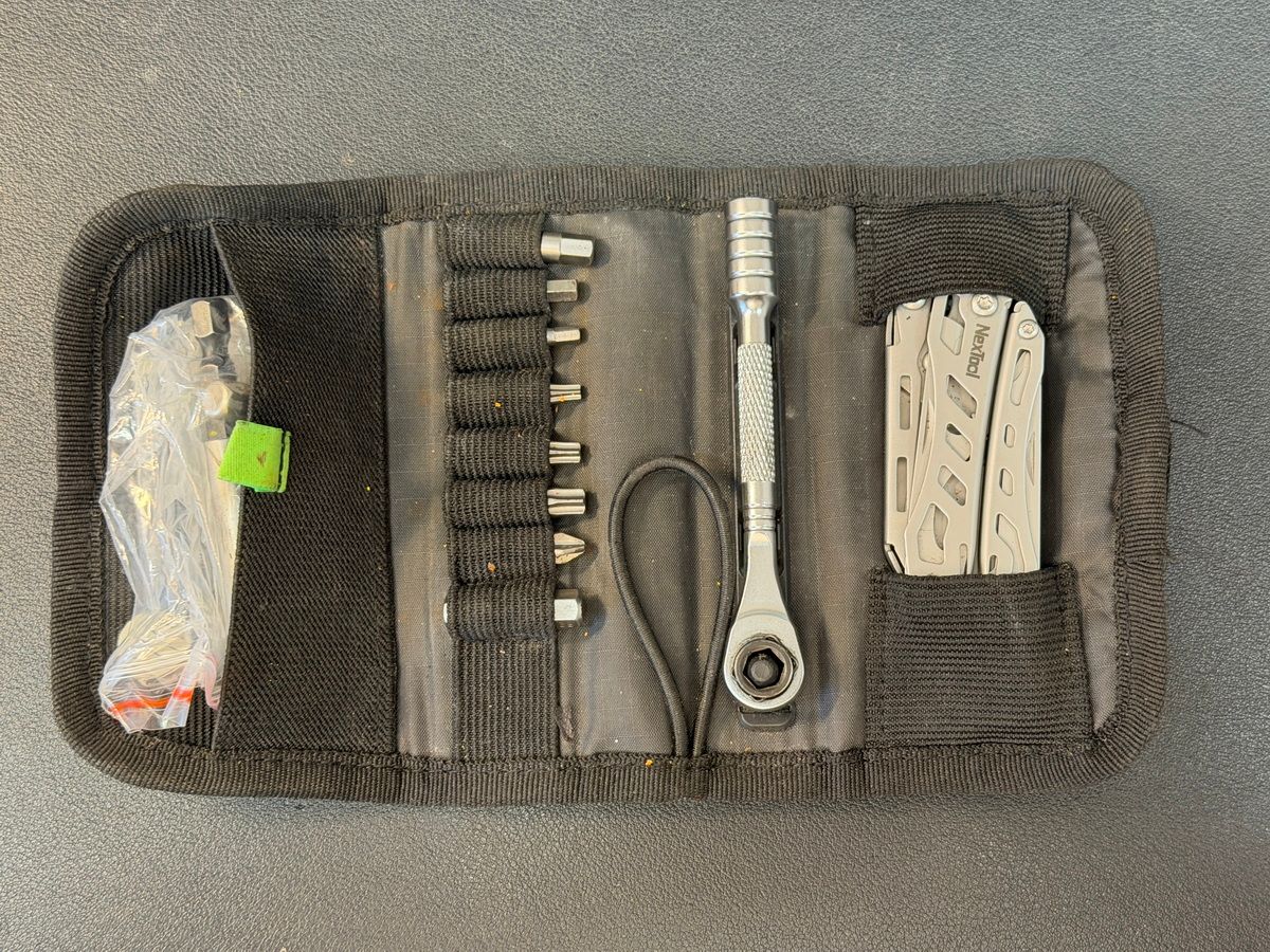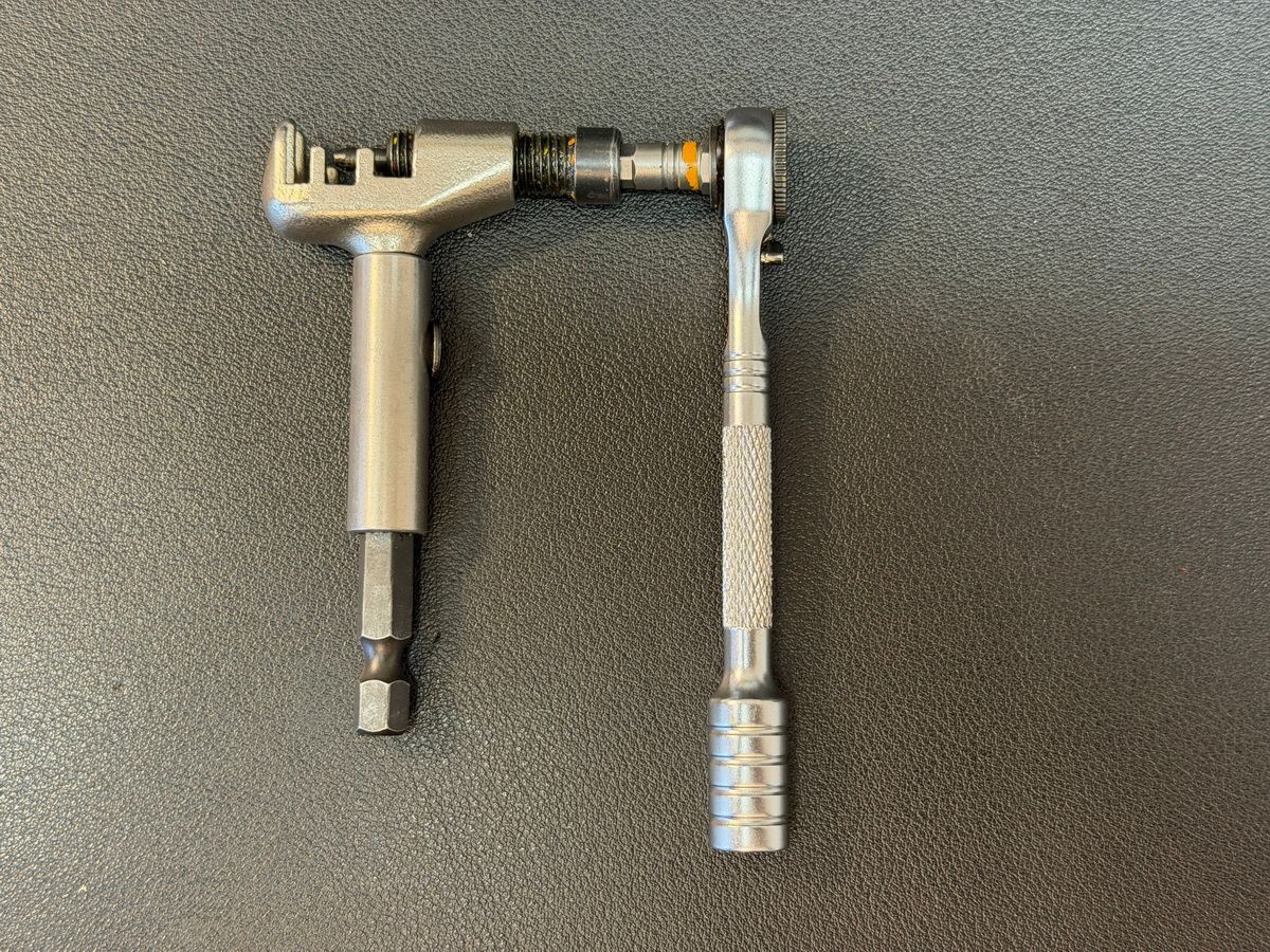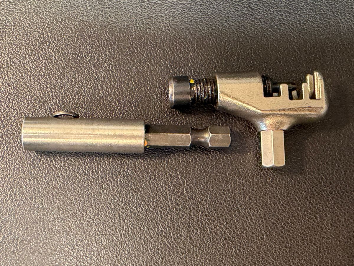 Wichtig ist, dass dein Multitool einerseits möglichst leicht ist, im Idealfall nicht rostet (sonst in einem ölgetränkten Tuch aufbewahren, das in einer Plastiktüte steckt), dass es aber bei aller Kompaktheit so gute Hebel bietet, so dass sich auch schwer sitzende Schrauben an unzugänglichen Stellen schnell und sicher lösen lassen (vor allem bei kleinen Torx- oder Inbus-Schrauben ist es oft gar nicht so einfach, das Werkzeug sauber anzusetzen). Viele Minitools sind zwar sehr kompakt, eignen sich aber nur bedingt für schwer zugängliche oder fest sitzende Schrauben. Ich bevorzuge deswegen Wechsel-Bits und eine kleine Ratsche. Der Chainbreaker ist separat und hat eine ansteckbare Verlängerung, die zugleich als Bithalter und -verlängerung fungiert. Zusammen mit der Ratsche hältst du ihn stabil in der Hand und hast einen guten Hebel, so dass eine gerissene Kette in zwei Minuten repariert ist. Mit allen Elementen des Werkzeugs vorher einmal richtig gearbeitet zu haben, gibt dir ein gutes Gefühl dafür, ob es wirklich was für die Praxis taugt - oder nur hübsch aussieht und sich im Notfall als unbrauchbar erweist.
