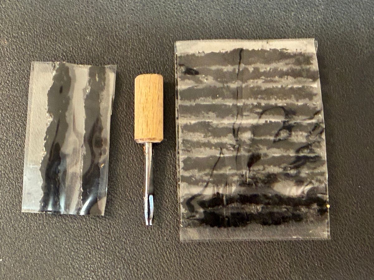Zwei, drei Ledernadeln (eine gekrümmte Ahle und eine gerade mit klingenartiger Spitze) können dich aus allerlei Defekten retten. Du kannst einen abgerissenen Schnellverbinder annähen, Taschen und Kleidung flicken - und eben auch einen größeren Riss im Reifen. Einen Riss nähst du mit Hilfe der Zange am Multitool zusammen, klebst danach von innen Panzertape gegen die Naht und ziehst einen Schlauch ein, wenn das mit dem Pumpstoß für die Erstbefüllung nicht mehr klappt oder du keine CO2-Kartusche dabei hast. Das wird dich sicher über die Distanz bringen. Zahnseide ist übrigens das bessere Garn: Du kannst sie für die Zahnreinigung nehmen - und alles damit nähen, was wirklich gut halten muss. Flach, unglaublich reißfest, zäh und leicht. Passt in jedes Werkzeugset, wiegt fast nichts und ist superpraktisch. Tipp: Nadeln leicht ölen und ggf. in einem ölgetränkten Lappen aufbewahren. Sonst rosten sie bei widrigen Bedingungen. Erst einmal angerostet, gleiten Nadeln nicht mehr leicht durchs Material, dann kannst du Reparaturen von dicken und dichten Materialien vergessen.