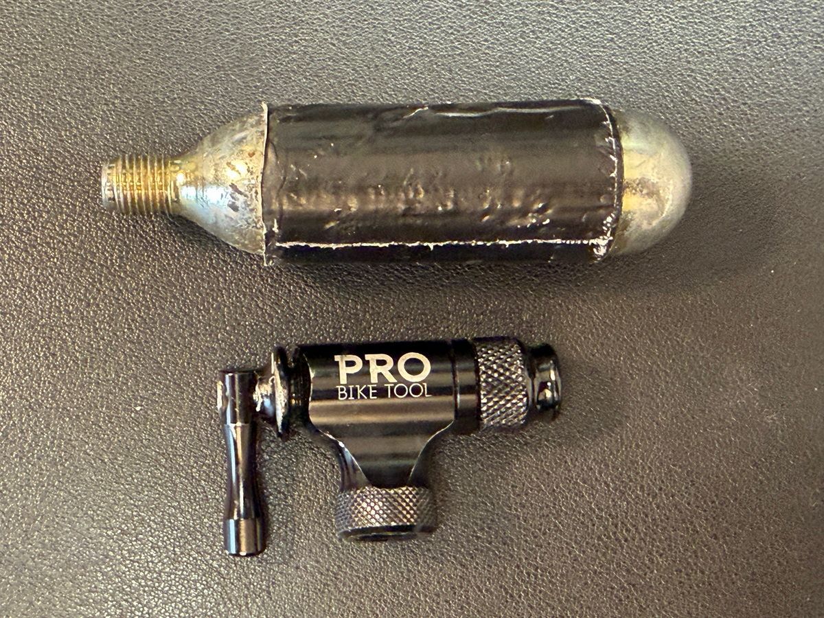 Extra Panzertape um die Pumpe zu wickeln, ist schlicht ein praktischer Tipp. Du solltest immer etwas davon dabei haben - aber ersetze altes Tape jedes Jahr durch neues. Sonst kann es passieren, dass der Kleber so gealtert ist, dass es unbrauchbar geworden ist. Bei Tubeless-Reifen lohnt sich eine zusätzliche CO2-Kartusche, denn damit bekommst du einen kräftigen Pumpstoß. Einen. Sonst würde ich keine Kartuschen mitnehmen, sie sind schwer und funktionieren nur ein einziges Mal. Das Panzertape kannst du auch als Isolierung um die Kartusche wickeln: beim Öffnen kühlen sie durch den Druckverlust schlagartig ab, und du kannst dir tatsächlich Erfrierungen holen, die ähnlich auf die Haut wirken wie Verbrennungen.