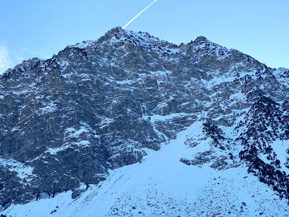 Einen besseren Namen als „Carpe Diem“ hätte die Mixed-Route (M5+) ja gar nicht haben können, die Sebi Brutscher und ich Anfang Januar 2020 durch die Rubihorn-Nordwand (1.957 m) geklettert sind: Top-Kletterbedingungen von Chamonix bis ins Allgäu (aufs Eis kommen wir gleich nochmal zu sprechen), gutes Wetter dazu.
